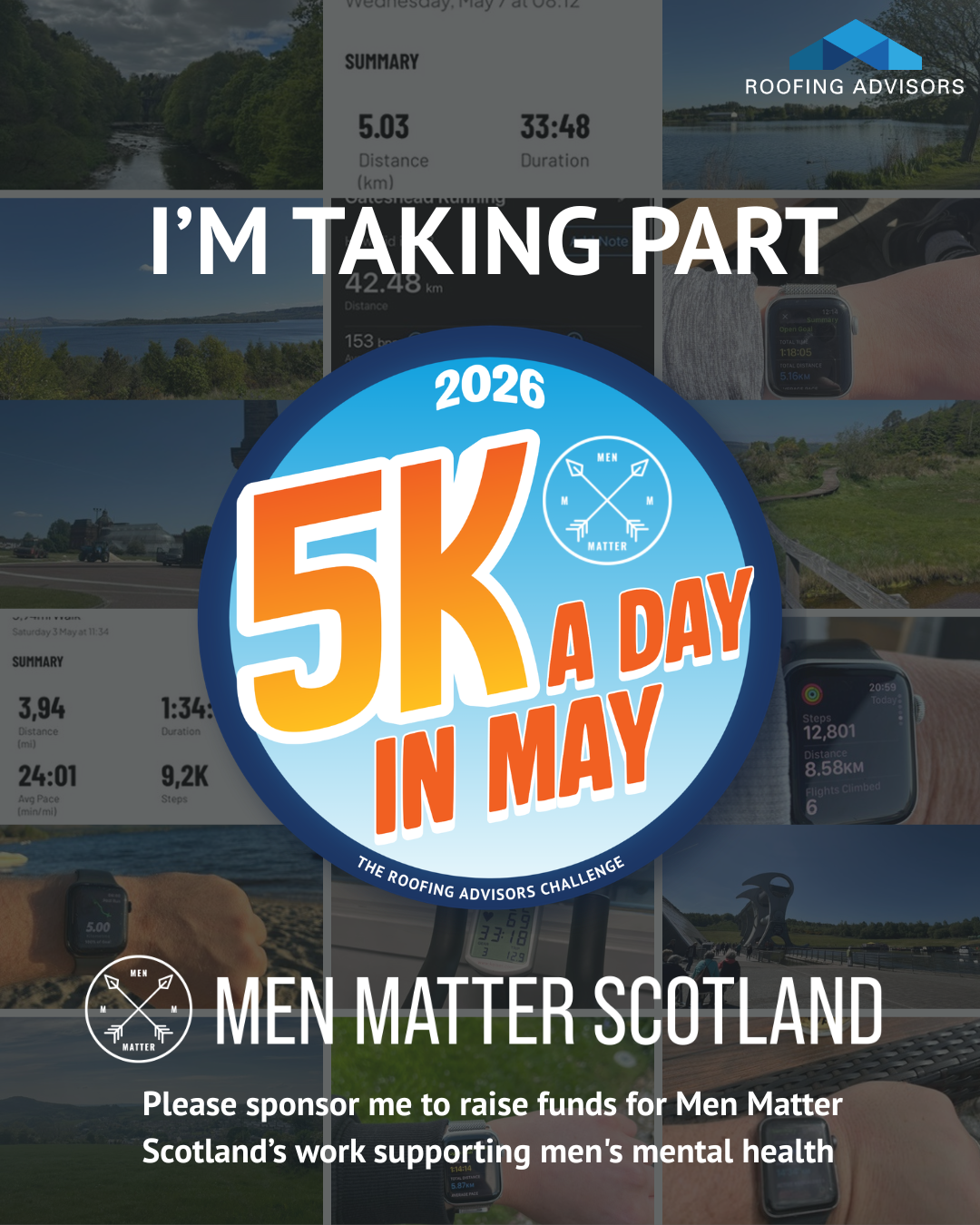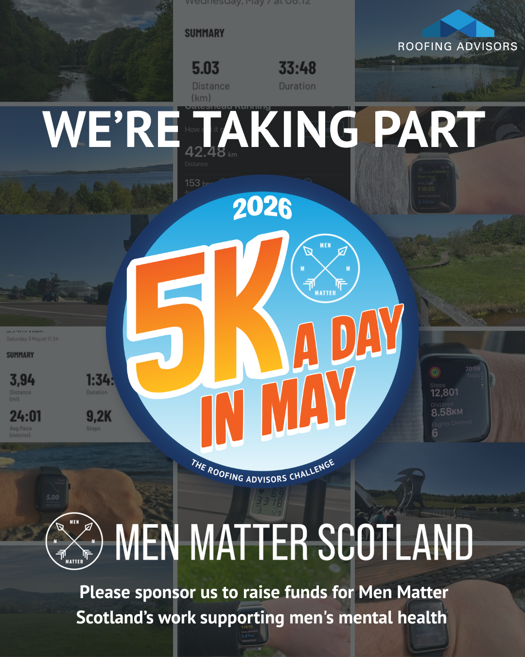 This is the third year Roofing Advisors UK has run the 5K a Day in May challenge and we’re making it the biggest yet, with construction and property companies from right across the central belt of Scotland taking part.